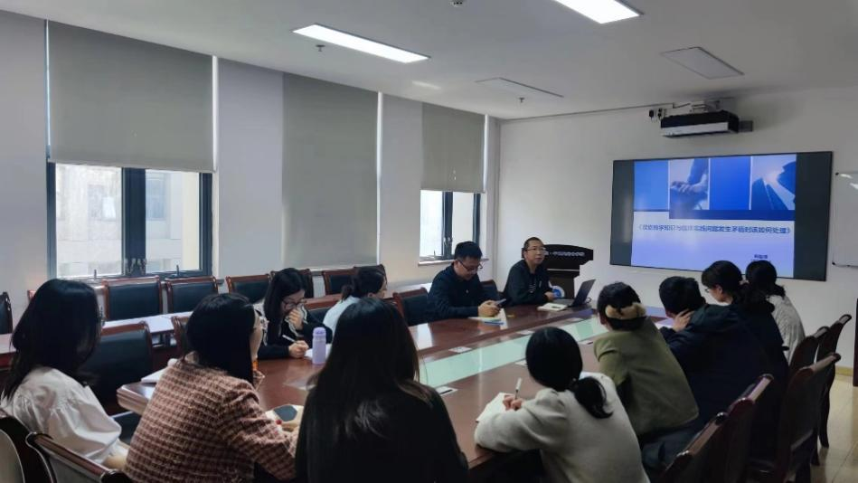 随后,中西医结合骨伤科教研室的韩智涛老师分享了“课堂教学知识与临床实践问题发生矛盾时该如何处理”的个人见解,就“临床问题本身的矛盾”“课堂知识与临床应用的矛盾”等突出的问题具体举例说明,展示了教学中突出的痛点和难点,引发了在场老师们的热烈讨论和深入的思考。