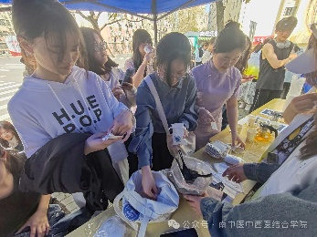 4.药茶分发——志愿者们为南农同学们准备了补血养颜和健脾除湿的药茶,并根据同学们不同的体质,向他们推荐了合适的药茶,在喝茶过程中科普中医养生,传播中医药文化。