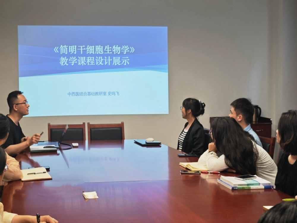 随后,史鸣飞老师以《简明干细胞生物学》课程为例,展示了拟开设选修课的教学设计。他分别从课程的开课背景、相关课程开设情况、课程简介、教学目标与要求、课程思政案例设计、教学内容及学时分配、虚拟实验室实践项目、课程考核评价、教材及主要参考资料等方面出发进行分享。与会老师就如何提高和优化课程教学设计进行了热烈讨论。针对课程名称吸引力不足,专业性过强等问题,大家认为可简化为“干细胞概论”或优化为“干细胞与生命”“干细胞与美容养生”等。对于新开选修课,建议将学时缩减为18学时,根据选课和员工反馈情况,后续再扩充至36学时。同时可以通过制作海报,以虚拟实验室操作项目为特色进行宣传,提高选课率。