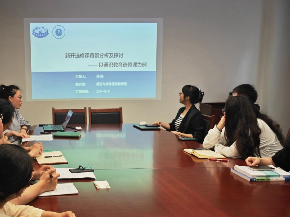 2024年5月21日,中西医结合基础教研室和循证与转化医学教研室全体教师,在丰盛楼103会议室开展了集体备课活动。本次活动主题为“理论与实践联动教学——提质升级,推进选修课程建设”。活动由中西医结合循证与转化医学教研室副主任章轶立老师主持。