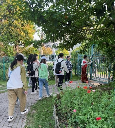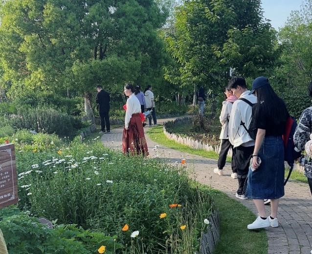 伴着落日余晖,两校同学走入药苑。恰逢春夏之交,不少中草药正逢花期,姹紫嫣红的花朵和形态各异的草药吸引了同学们纷纷合影留念。在22本博班同学的指引和科普下,东大的同学们赏过盛开的虞美人,了解了小茴香的功效,怀揣着满满的中草药知识再度踏上医学之路。