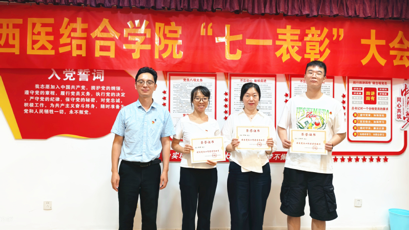 优秀党务工作者代表王凯旋、优秀共产党员代表赵凡、新发展教师党员代表严如根依次作交流发言。王凯旋表示获此殊荣,倍感荣耀,未来将加强学习,不断提升党务工作能力和水平,发挥员工党员先锋模范作用。赵凡表示,将继续以优秀党员的标准要求自己,不断提高自己的政治素质和业务能力,为中西医结合学科的发展贡献更多的智慧和力量,为培养更多优秀的医学人才而不懈努力。严如根表示,作为一名新发展教师党员,将加强理论学习,认真履行党员义务,积极参与党组织的各项活动,以更加饱满的热情投入到工作中,为中医药事业的发展贡献自己的力量。