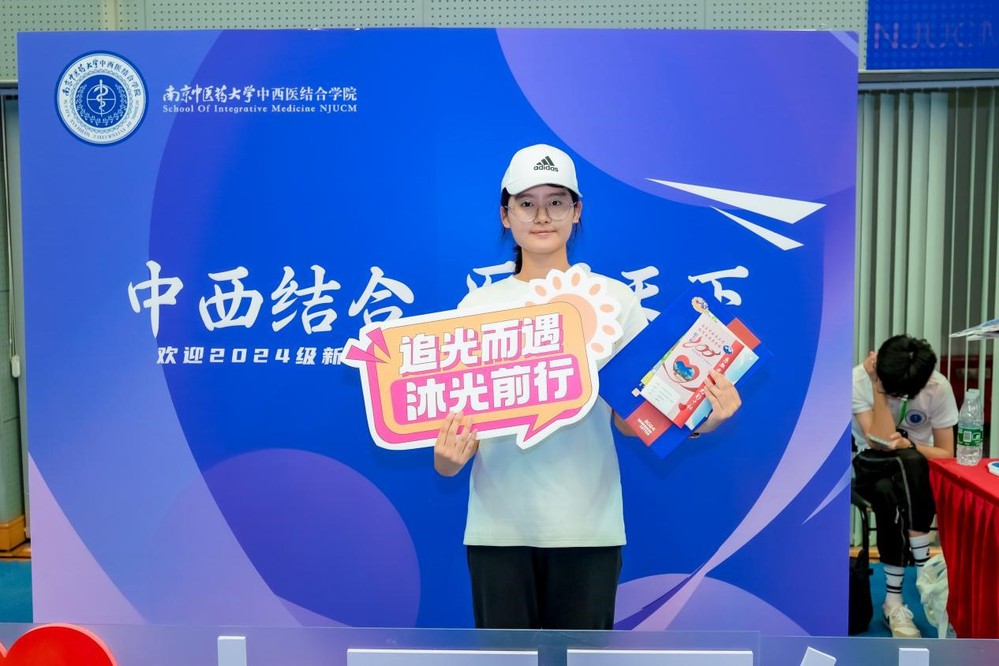 在完成报到手续后,新生和家长纷纷在场内和场外的迎新打卡点拍照留影,记录属于自己的第一份南中医美好记忆。