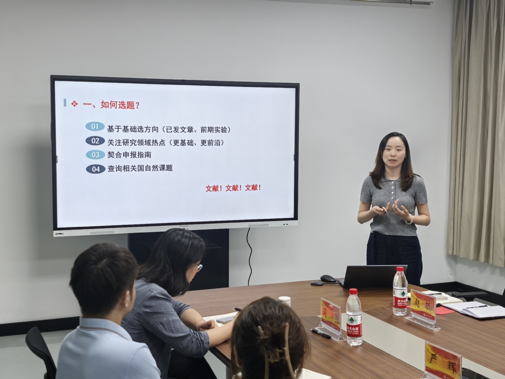 青年教师赵敏结合自身经历,讲述国家自然科学基金申报的心路历程,分享了课题申报总体选题、标书撰写、前期工作各方面的切实经验,并祝愿大家都能“向下扎根、向上生长、有所收获”。