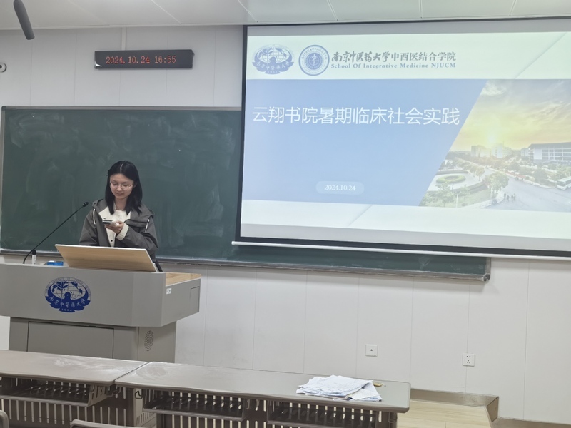 李沁颉同学则分享了自己在国医堂的跟诊经历,国医堂浓厚的学习氛围让她在暑假期间学到了很多新的内容,也让她了解了如何将中医药运用到现代疾病的治疗当中,为未来的学习和科研研究打下良好基础。