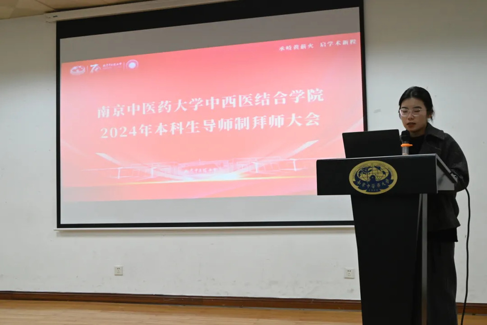 纪芝萍同学作为2023级中西医临床医学专业本导培养对象代表,表示将在导师指导下深入科研,探索中西医结合领域,努力成为兼具创新精神与实践能力的医学人才。她承诺珍惜导师制机会,以勤奋与行动诠释对医学的热爱,成长为有理想、有责任的新时代中西医结合人才。