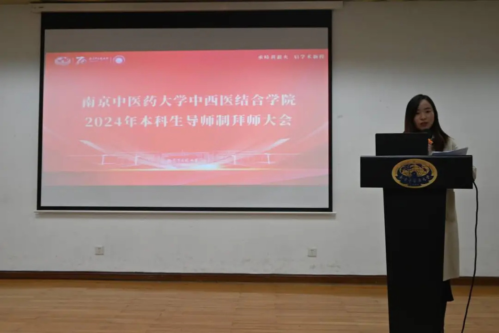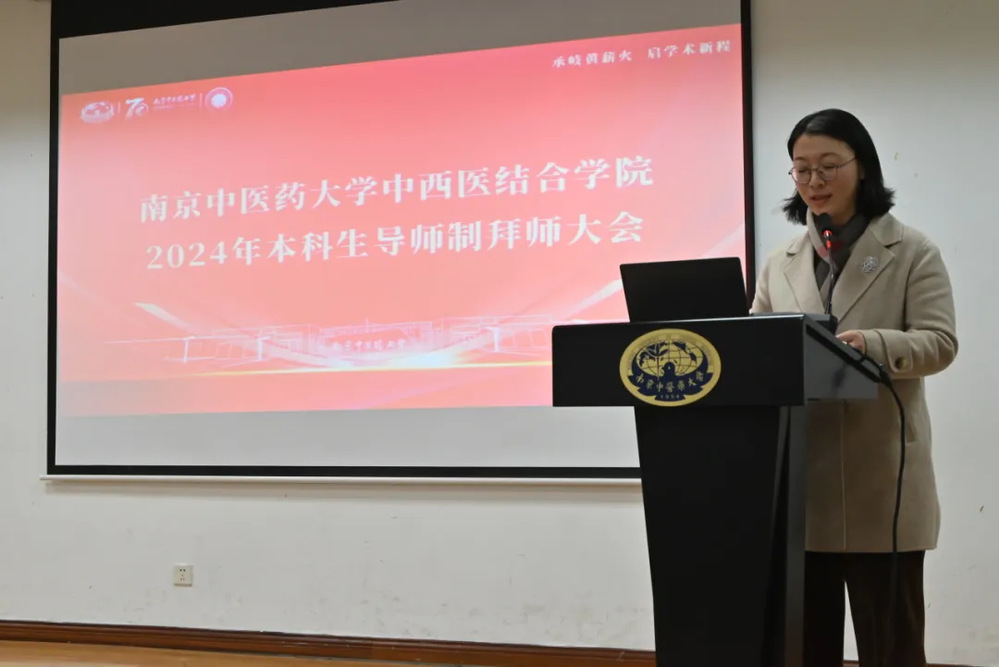 2024级中西医临床医学(本博贯通培养)专业的本导代表韩暄副教授回顾了自己本科时期在导师指导下的成长经历。从基础诊疗知识到临床思维能力的养成,她深刻体会到师承在医学成长中的关键作用。她表示,作为本导导师,深感责任重大,将持续关注最新科研进展,与员工在教学与研究中共同成长。韩教授寄语员工,希望他们不断激发内驱力,志存高远,通过不懈学习与实践,成长为具有扎实医学基础与创新能力的中西医结合人才。
