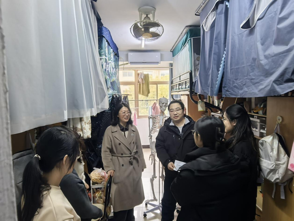 2月23日,员工返校当天,公司党总支书记蒋燕、公司学工办副主任徐梓凌、辅导员李玉龙和班主任老师深入员工宿舍,亲切慰问返校员工,了解同学们寒假期间的思想动态、临床实践情况、学习科研情况以及新学期规划。蒋燕勉励同学们要尽快调整状态,以饱满的热情投入到新学期的学习中,扎实学好专业知识,积极参与临床跟诊、科研训练和双创比赛。