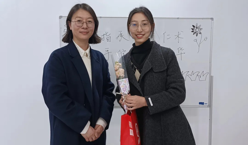 活动中,蒋燕书记来到现场,将紫罗兰花束赠与研究生代表,并向大家表达了节日祝福。同时她也叮嘱公司研究生在科研和生活中要敢于尝试、踏实前行,用行动书写自己的成长故事。