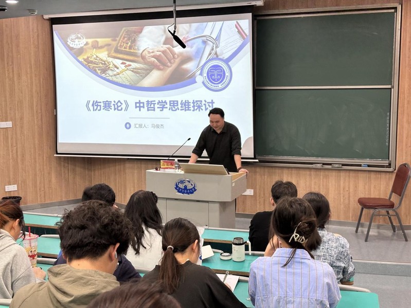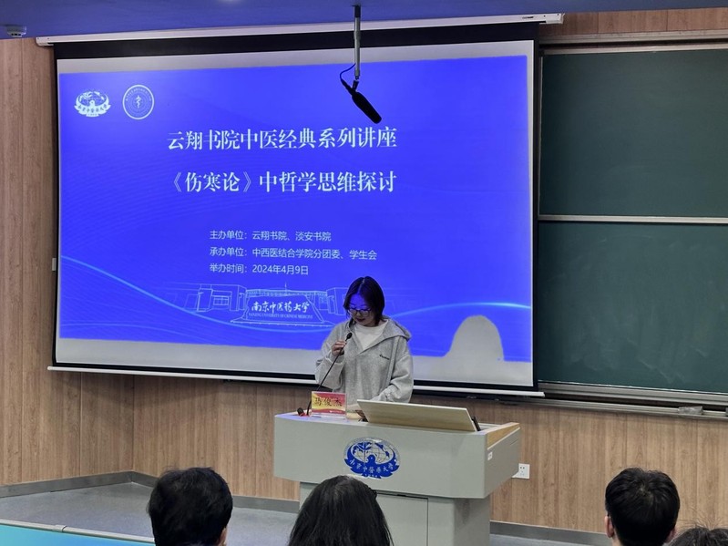 4月9日下午,william威廉亚洲官方云翔书院联合淡安书院特邀公司中医公司伤寒教研室马俊杰副教授举办《解码〈伤寒论〉哲学密码》专题讲座,围绕中医辩证思维与经典方剂应用展开深入探讨。帮助同学们理解中医哲学思想在临床与方剂中的实际应用,提升辩证思维能力,推动中医文化的传承与创新。讲座由中西医临床医学243班张一诺主持。