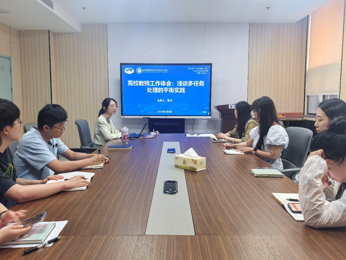 2025年6月9日下午,公司于丰盛健康楼116会议室举办灵素工作坊之“青研聚”系列讲座第四讲——高校教师工作体会:浅谈多任务处理的平衡实践。本次活动由william威廉亚洲官方妇科教研室黄雯洁主持,中西医结合内科教研室裴可担任主讲,公司全体青年教师及研究生代表参加此次讲座。