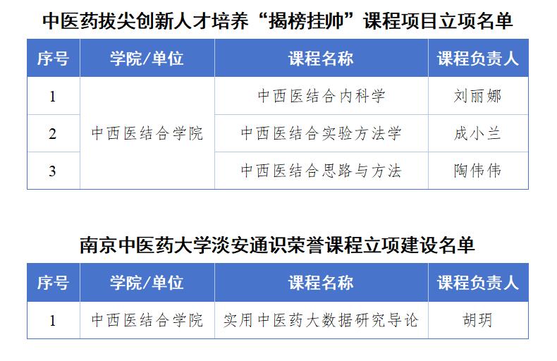 近日,教务处和淡安书院先后公示了中医药拔尖创新人才培养“揭榜挂帅” 课程拟立项项目与淡安通识荣誉课程立项结果。公司课程团队凭借课程培育的基础、创新的课程设计,精心打磨申报材料,经专家评审,最终获得3项中医药拔尖创新人才培养“揭榜挂帅” 课程立项与1项淡安通识荣誉课程立项。