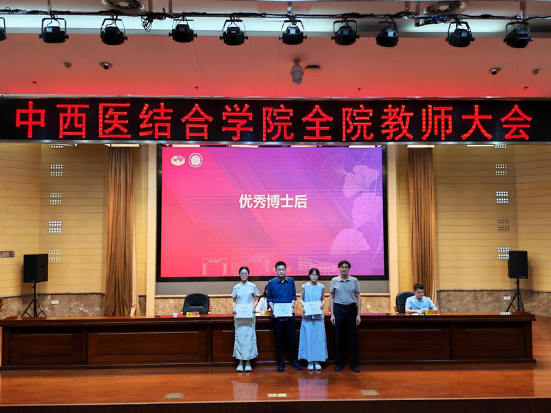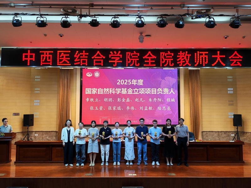 会议首先对公司各类优秀教师和团队进行了表彰。荣获中西医结合学科卓越创新人才培育工程A类、B类、C类项目负责人,2025年度国家自然科学基金立项项目负责人,员工竞赛优秀指导教师团队,老员工创新训练计划优秀指导老师以及优秀博士后等依次上台接受荣誉证书。公司领导蒋燕书记、贾立军经理为获奖教师颁奖。